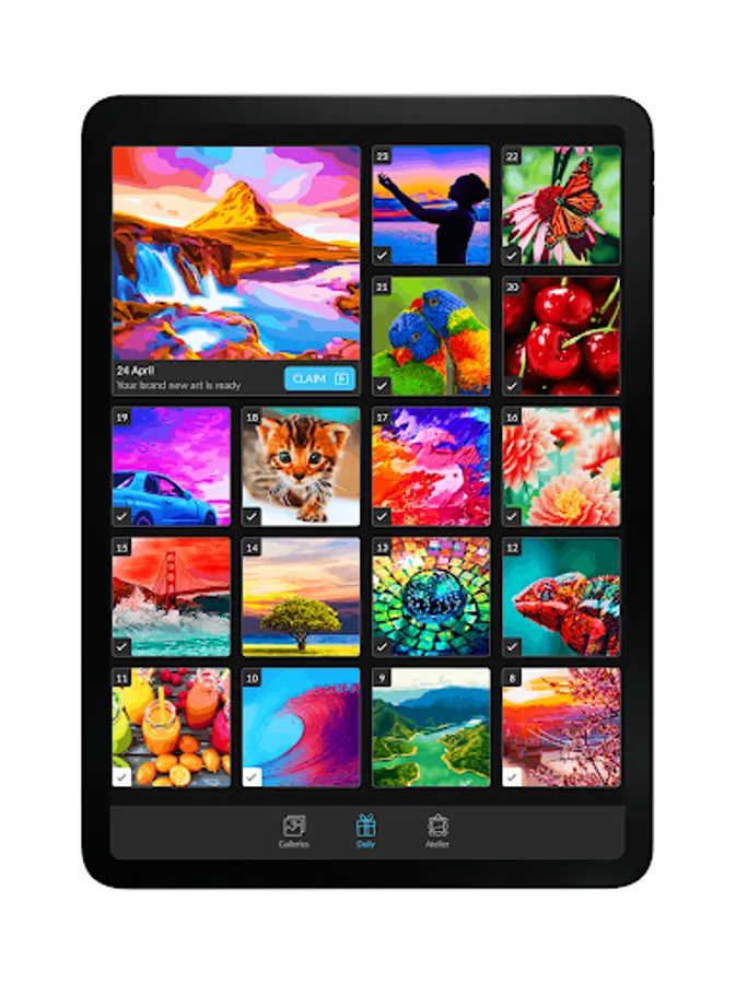 Color with swipes instead of taps! April Oil Painting by Number game for adults is completely unique - use swipes just like with a paintbrush! It’s all you ever wanted from an oil painting by number game for adults and it grants you even more!