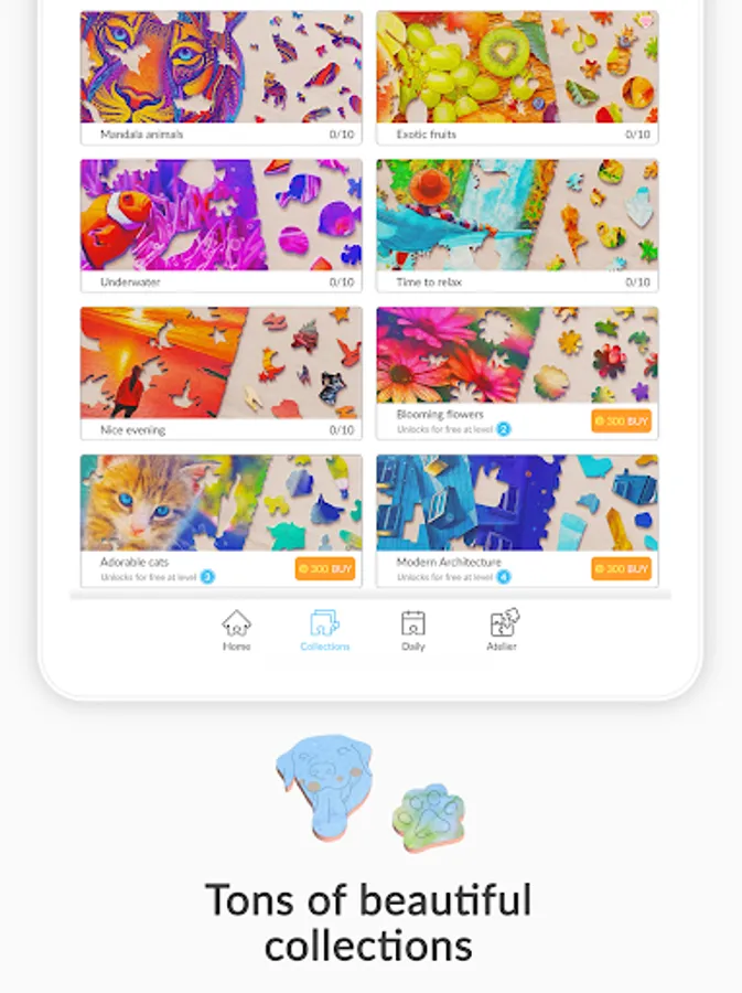 You unlock more 3D jigsaw puzzles by number as you level up. Each board allows you to zoom in and out to find and place selected jigsaw puzzles. Numbers indicating the exact position of each puzzle make it more convenient and relaxing. Moreover, you will gain access to hundreds of new 3D jigsaw puzzles by number collections as you progress through the game.