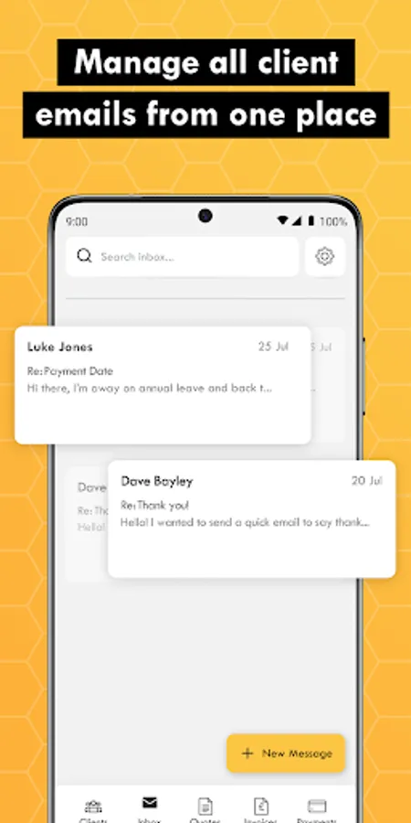 INBOX: Connect your email to BeePro to manage all your client emails in one place – don’t worry, it only pulls through emails for clients. These will be sorted by client and will appear on the customer timeline to give you the full picture. BeePro creates one, clear place to write, send and receive your client communications, without all the noise.