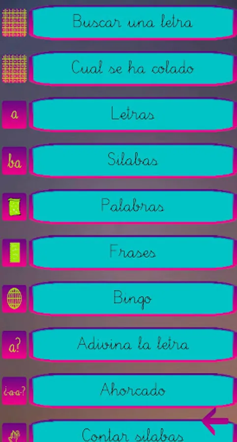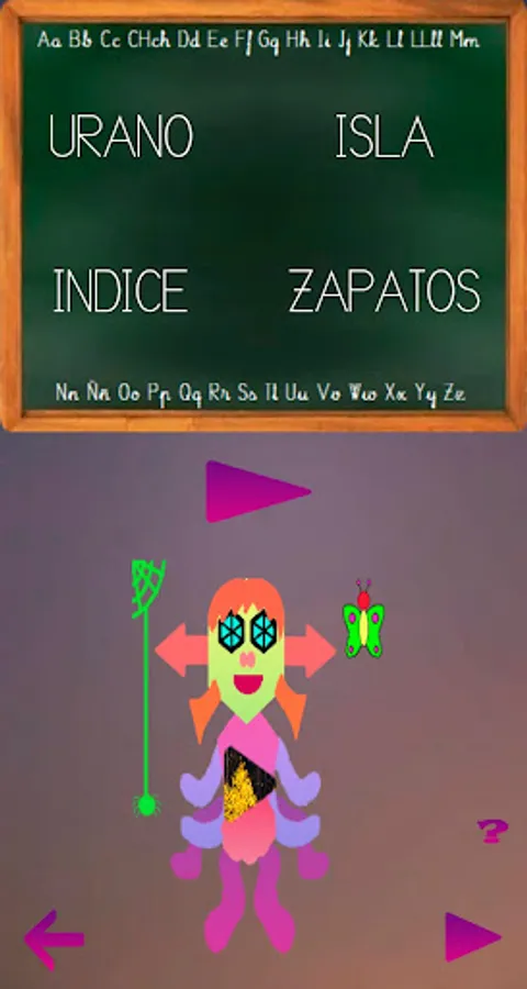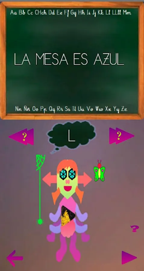 In addition to this, there are a series of mini-games, so that they learn to discriminate between letters, to form words in different ways and to improve their learning. These games are letter discrimination, matching images or sounds with words, letter bingo, picking the missing syllable, word search, hangman, and guessing a letter. The objective of the games is to help the student to distinguish letters, words and sounds. As the phonemes, syllables, words and phrases are read, the application requests confirmation that it has been done correctly, the last two show an image that represents said word. All this accompanied by music to liven up learning. In addition, the avatar can take different forms at the user's choice. The fundamental part of the game is the sections of Phonemes, Syllables, Words and Phrases. The rest of the minigames serve to habituate and improve their understanding and discrimination of letters, syllables and words.
