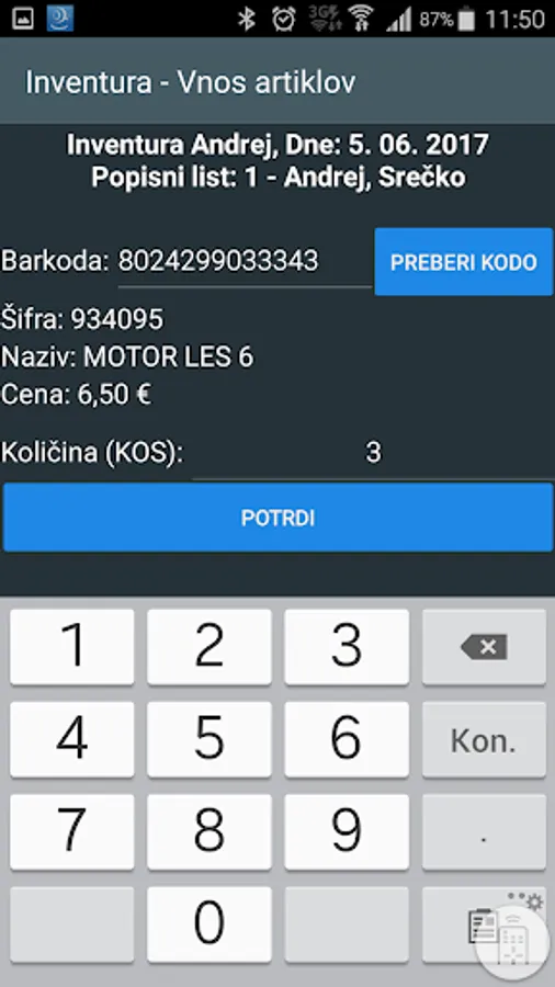 The mobile app is designed for Windows users to the retail program PosTrade. It acts as an additional tool for the program above and in conjunction with an existing database user. Users of retail units via scanning barcode or manual entry of articles provides an overview of the prices of items, inventory, discounts, and is used as an aid when entering the inventory.