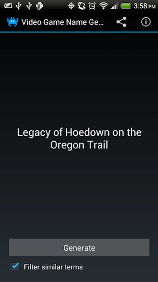 Whether you're looking for a new direction or just a few good laughs, the Video Game Name Generator has you covered. Millions of ideas, from mundane to arcane, are now at your fingertip. Yeah, it only takes one.