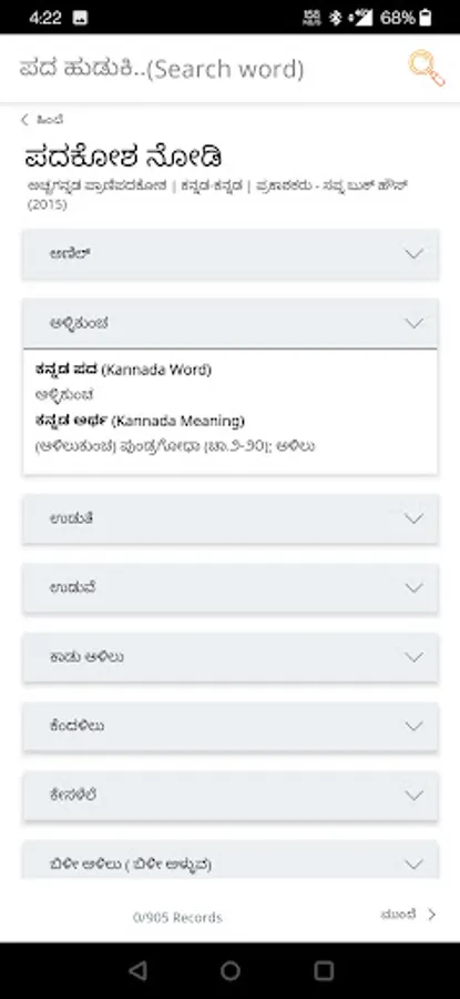 • Allows user to search both Kannada and English words for its meaning and other attributes.