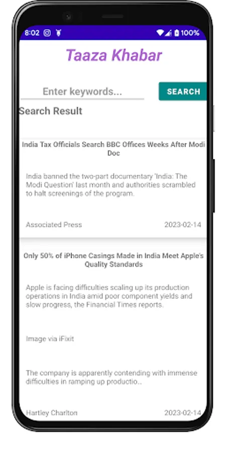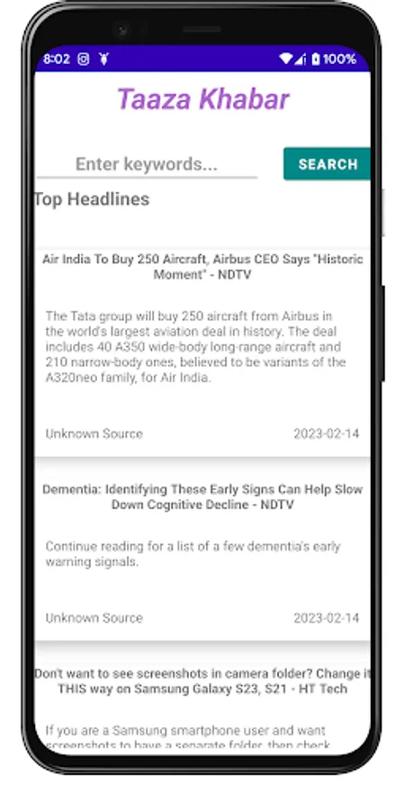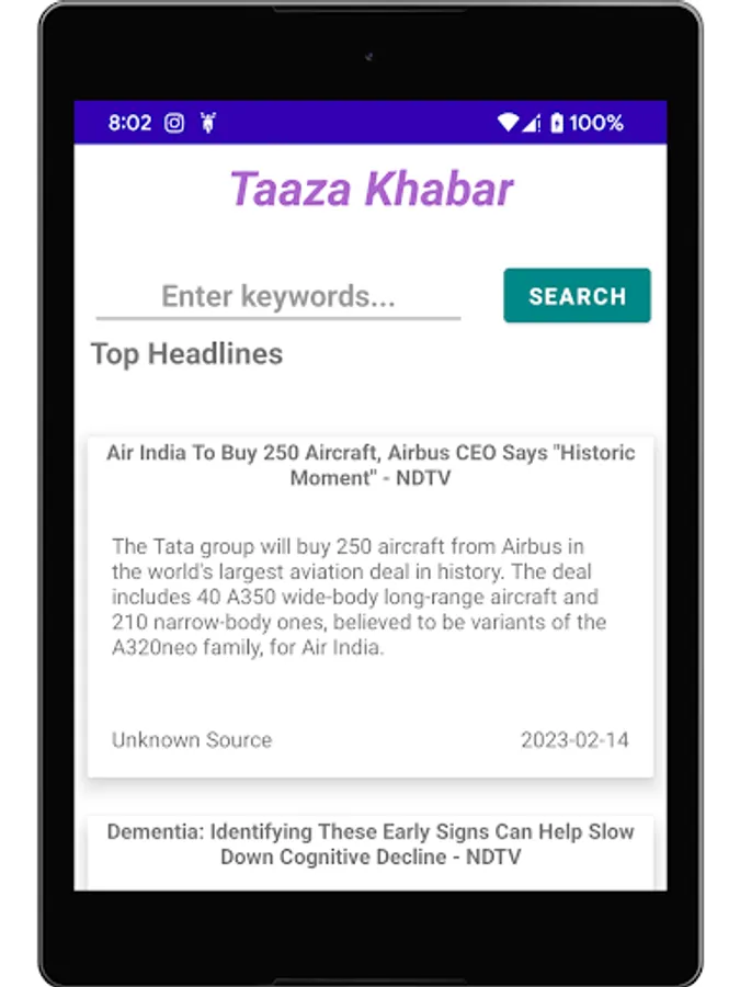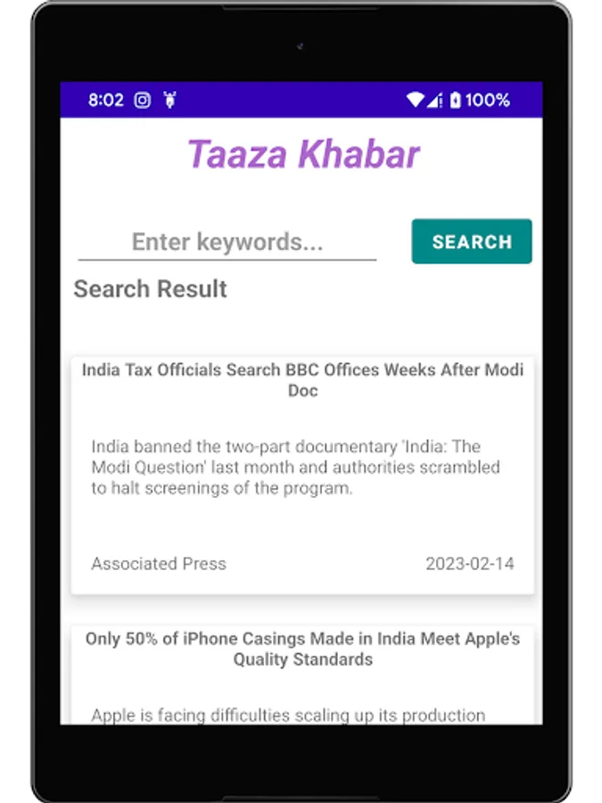 Wanna keep yourself updated by the latest news? You are at the right place. Taaza Khabar keeps the user updated about the latest news. The aim is to keep latest news in the top headlines. Also, it has the feature to search about any news from the past. Latest news updates can be seen on the headline, further details about any particular news can be seen when clicked on any headline. The headlines also includes date, time and source of the news. Newspaper tells you what has been done yesterday, but Taaza Khabar brings you what is going on today. Of course what is past can be seen but what is being done on the other side of the world in present should also be taken care of. In today's day and age, being updated is most important, whether it is your system or be it yourself. Then why to stay back when you can be at the front? Hit download, get the latest news, be updated be ahead!