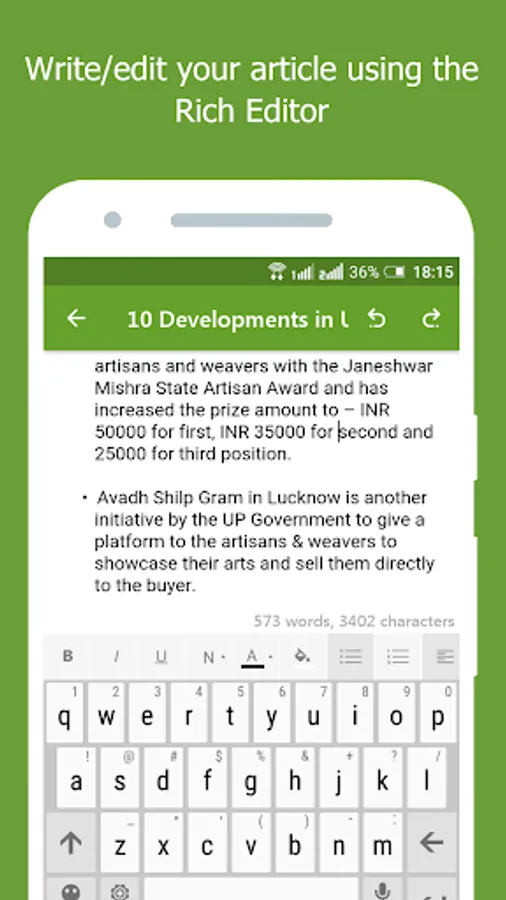 - Real Time Synchronize- Articles written on Mavenfy Pad keeps getting automatically synced between the mobile & Web Version.