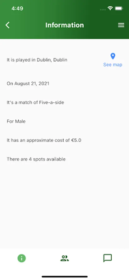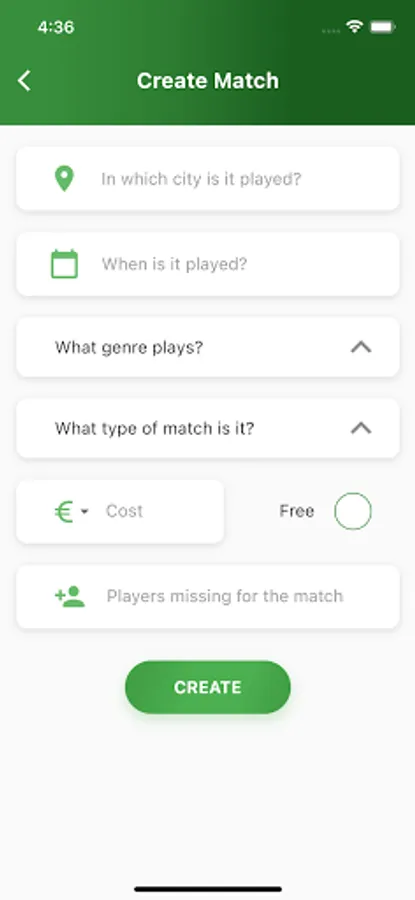 With Fulbito you can create matches in your area in a few simple steps! Just indicate where and when you want to play. Who plays, is a mix? a women game? or a men game?. The type of match, 5-a-side, 7-a-side, 9-a-side or 11-a-side. It is a free match? Or have any cost?. And lastly how many players are you missing for the match? Maybe you need just 3 or an entire team, you choose!