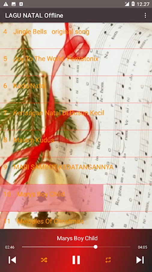 Complete Christmas Songs mp3 Offline is an application that we made for lovers of Christmas Songs, we also made with clear song sound quality. Many of the best Christmas carols are very easy to listen to anywhere and anytime by Christmas carol fans.