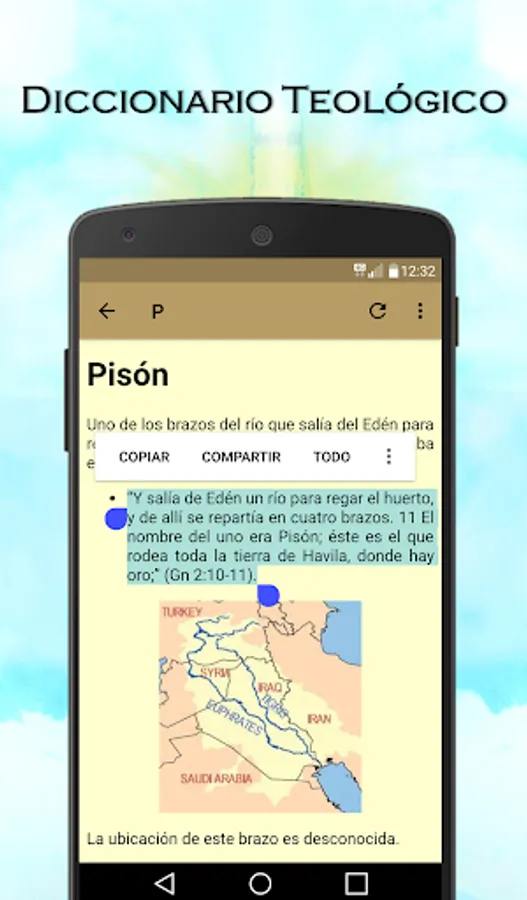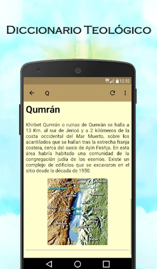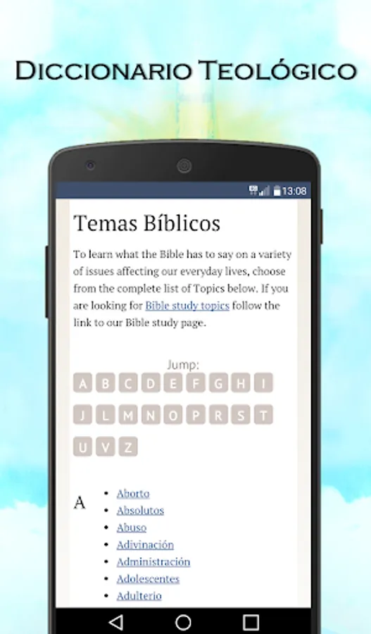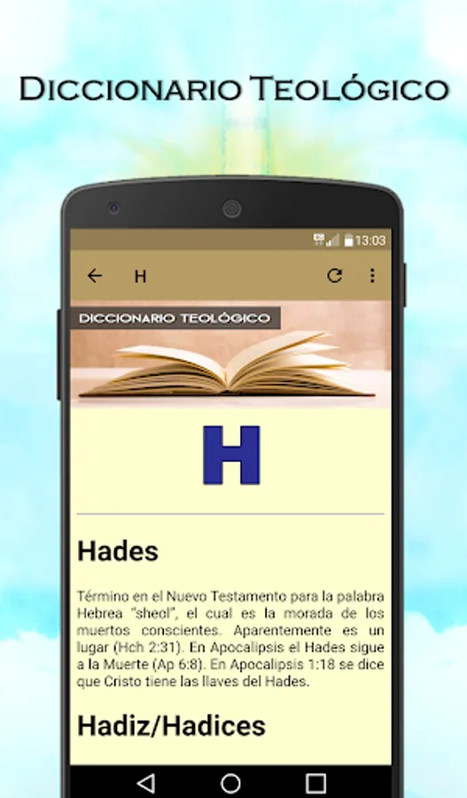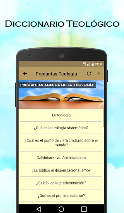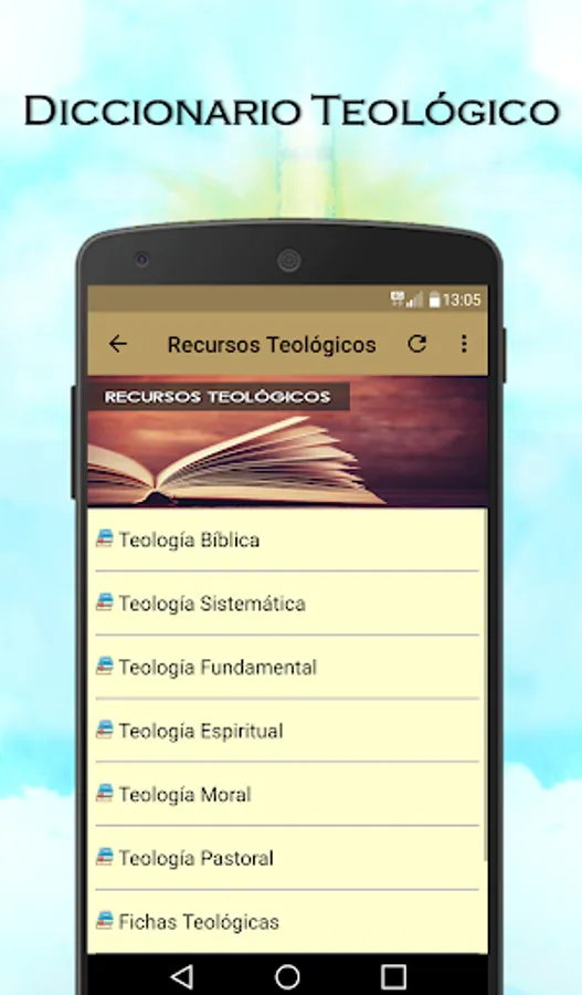 The application includes theological resources, among which you can learn systematic theology, moral theology, spiritual theology, fundamental theology, pastoral theology, theological chips, Christology, subject concortancia, theology library or encyclopedia.