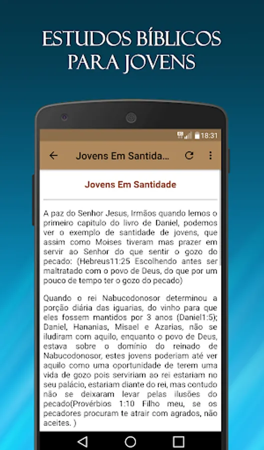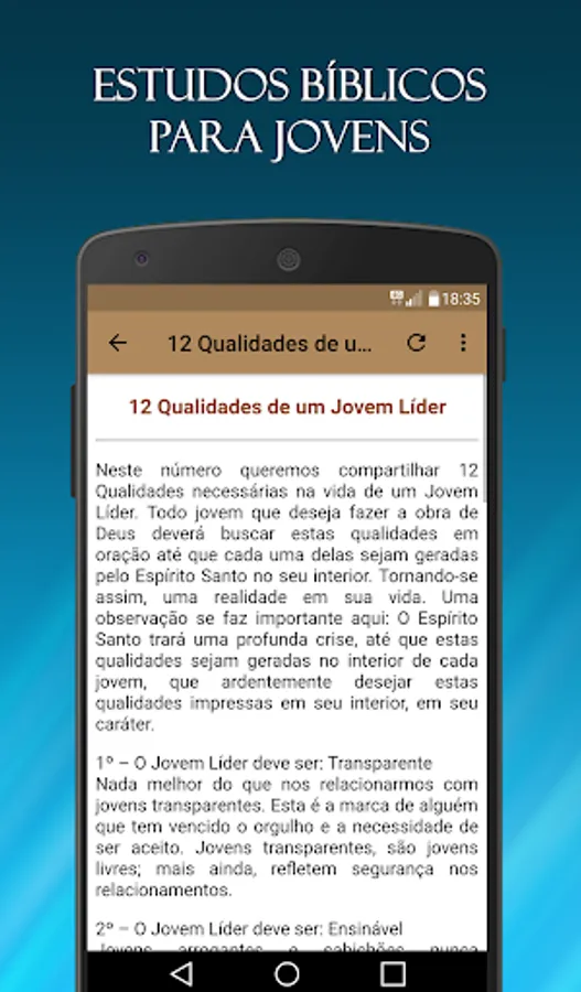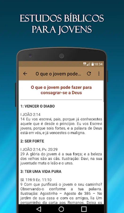 This application contains the following: Bible studies for young evangelicals is Bible study for young Christians. Recommended for daily reference.