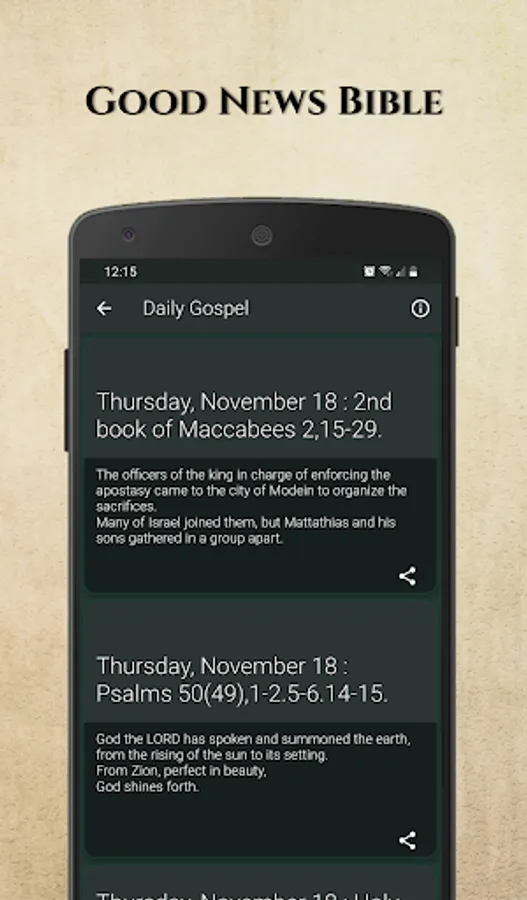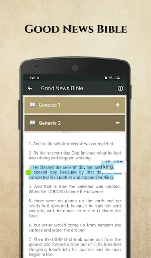 Download the Good News bible and start your day fresh with a daily verse and carry your soft-copy of the Good News Bible with you anytime and anyplace you are or wish to go, and share God's Word to spread light and love to your close ones. This App offers immaculate friendly features that will make your daily Bible reading a wonderful experience.