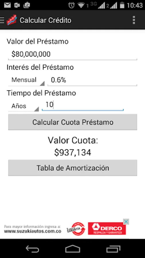 Calculate the cost of your loan and see if quotas are set according to your needs