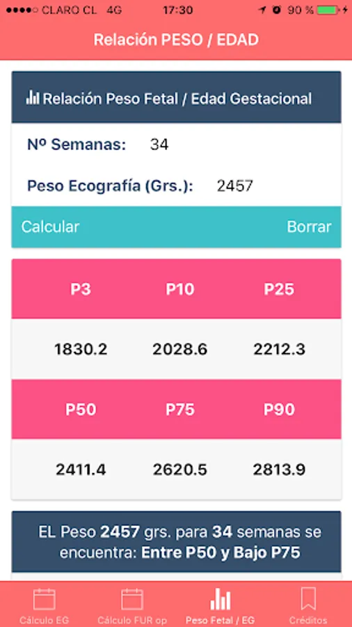 - Relationship of Fetal / Gestational Age Weight (According to the growth curves for Chile to 2010).