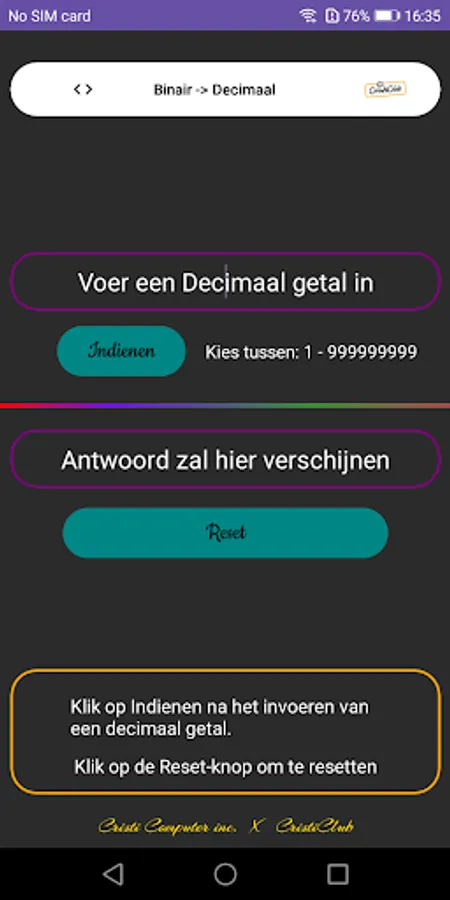 A simple app to convert your binary code to a decimal digit. This app is also available for Wear OS.