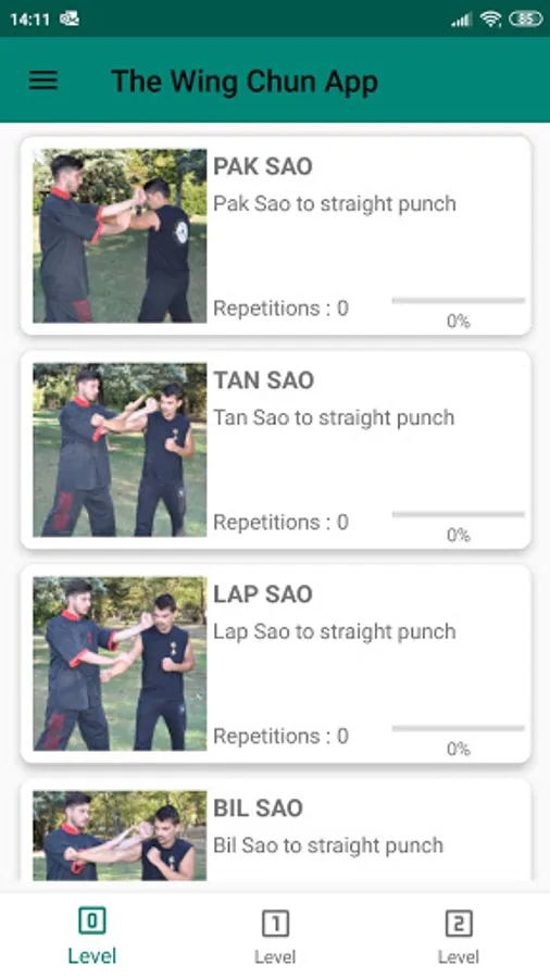Wing Chun App contains the official techniques for all levels of Tranditional Wing Chun Kung Fu. Techniques are organized by forms and levels. There are three forms : Si Lim Tao, Chum Kil and Bil Jee. Each form has three levels with the appropriate techniques. Repetition is the mother of learning so this application allow you to record your training , you can set goals and monitor your progress. Wing Chun App allows you to have reference of all techniques in your mobile phone or tablet, so if you forget something you can find it. There are explanatory pictures for each technique with emphasis to key points.