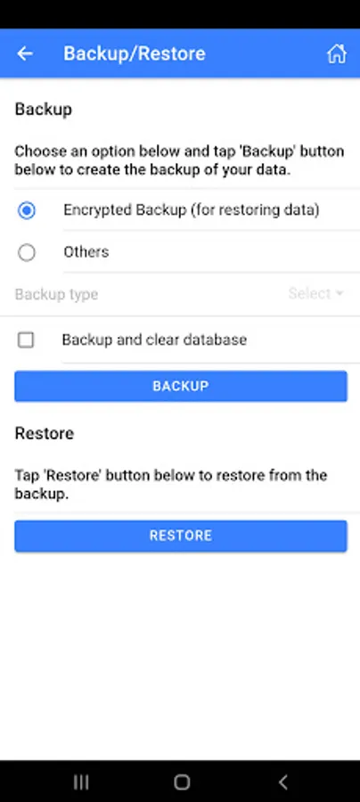 * Supports secure backup and restore of the encrypted data file to the SD card or device.