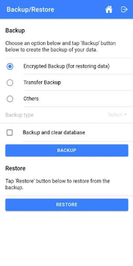 * Supports secure backup and restore of the encrypted data file to the SD card or device.