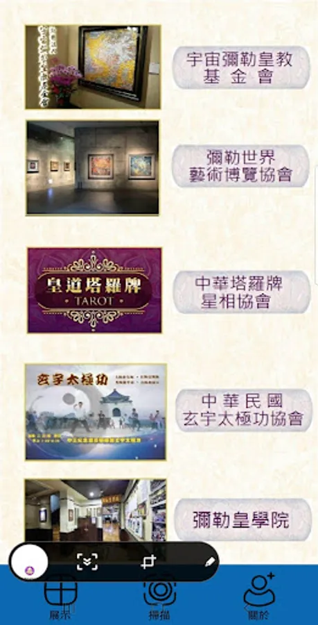 *展示頁--針對”宇宙彌勒皇教基金會”各相關單位作簡單文字介紹