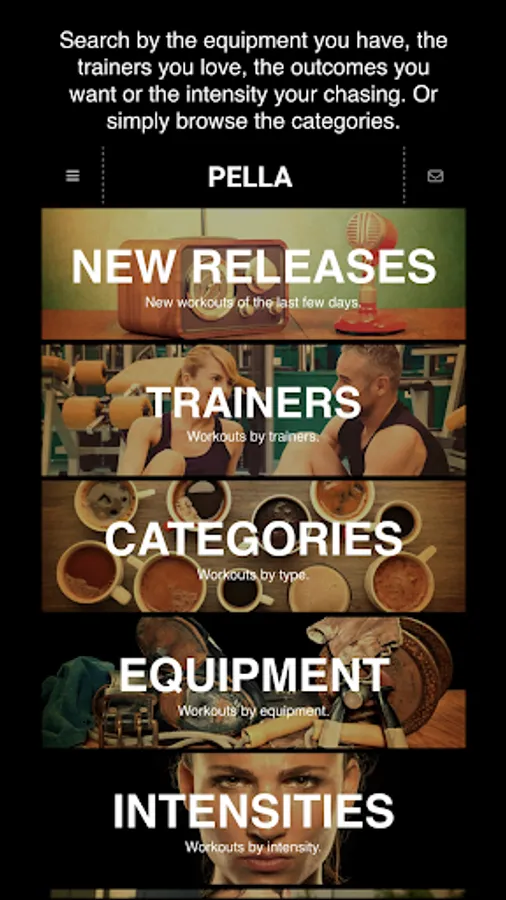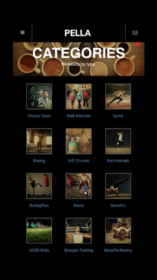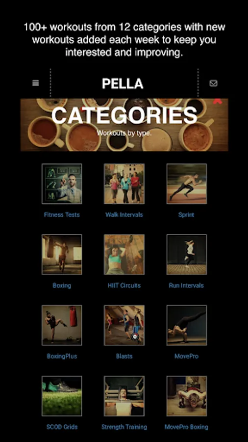 Pella offers over 100 workouts from 12 different categories, from boxing to running, to lifting weights, to sprint training, to fitness testing, to HIIT circuits. And everything in between.