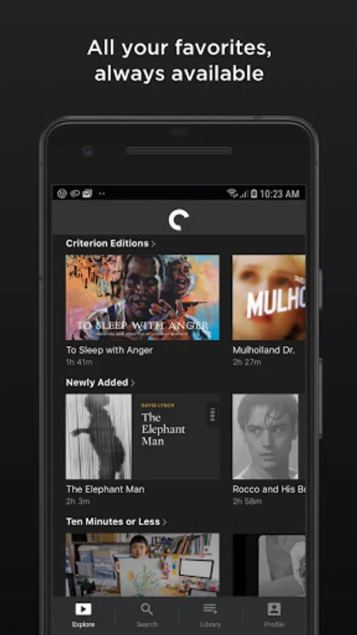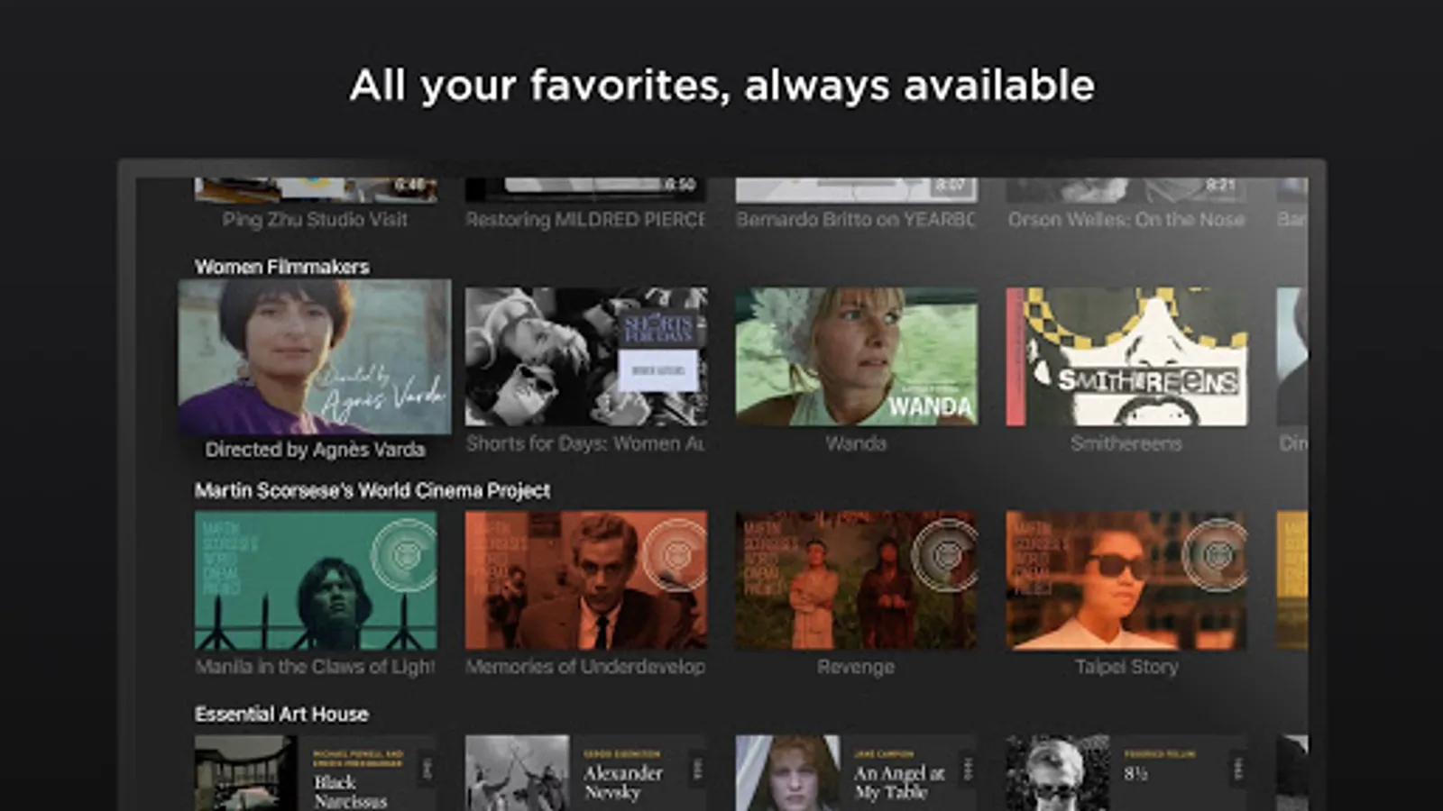 To access all features and content you can subscribe to The Criterion Channel on a monthly or yearly basis with an auto-renewing subscription right inside the app.* Pricing can vary by region and will be confirmed before purchase in the app. In app subscriptions will automatically renew at the end of their cycle.