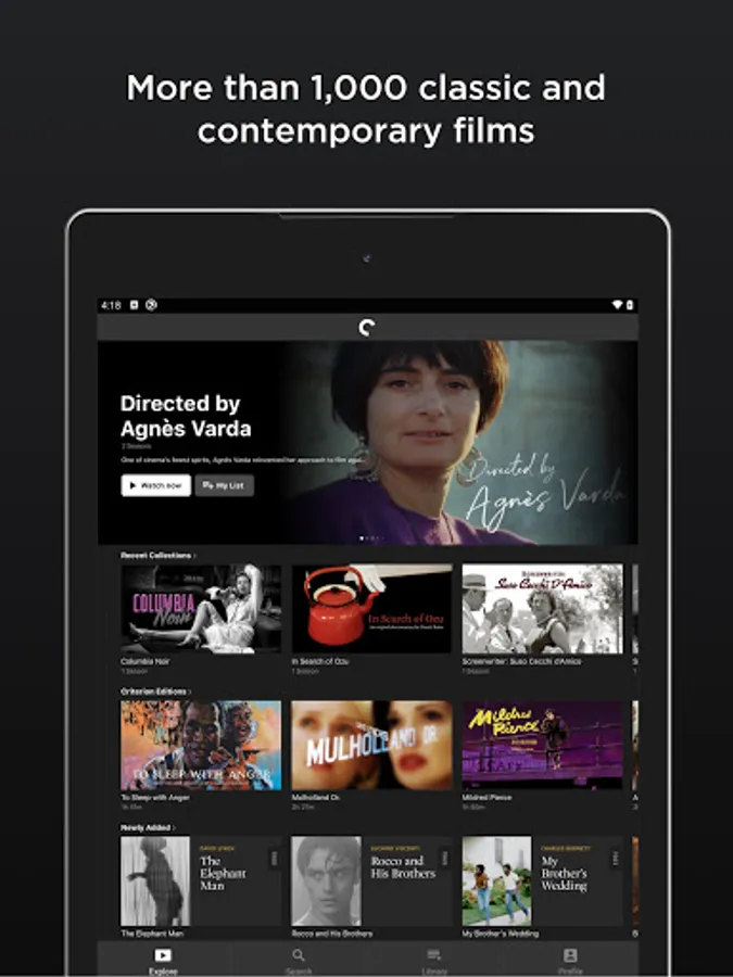 - The Criterion Collection’s streaming library, including many complete editions released on Blu-ray and DVD, as well as unreleased titles