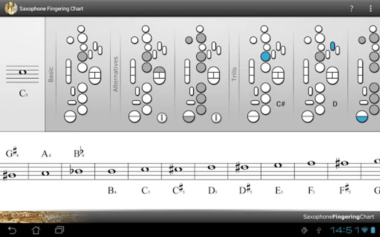 Saxophone Fingering Chart is an easy to use reference app, that shows all the common fingering & trill combinations available on the saxophone. The most comprehensive guide available for Android OS!