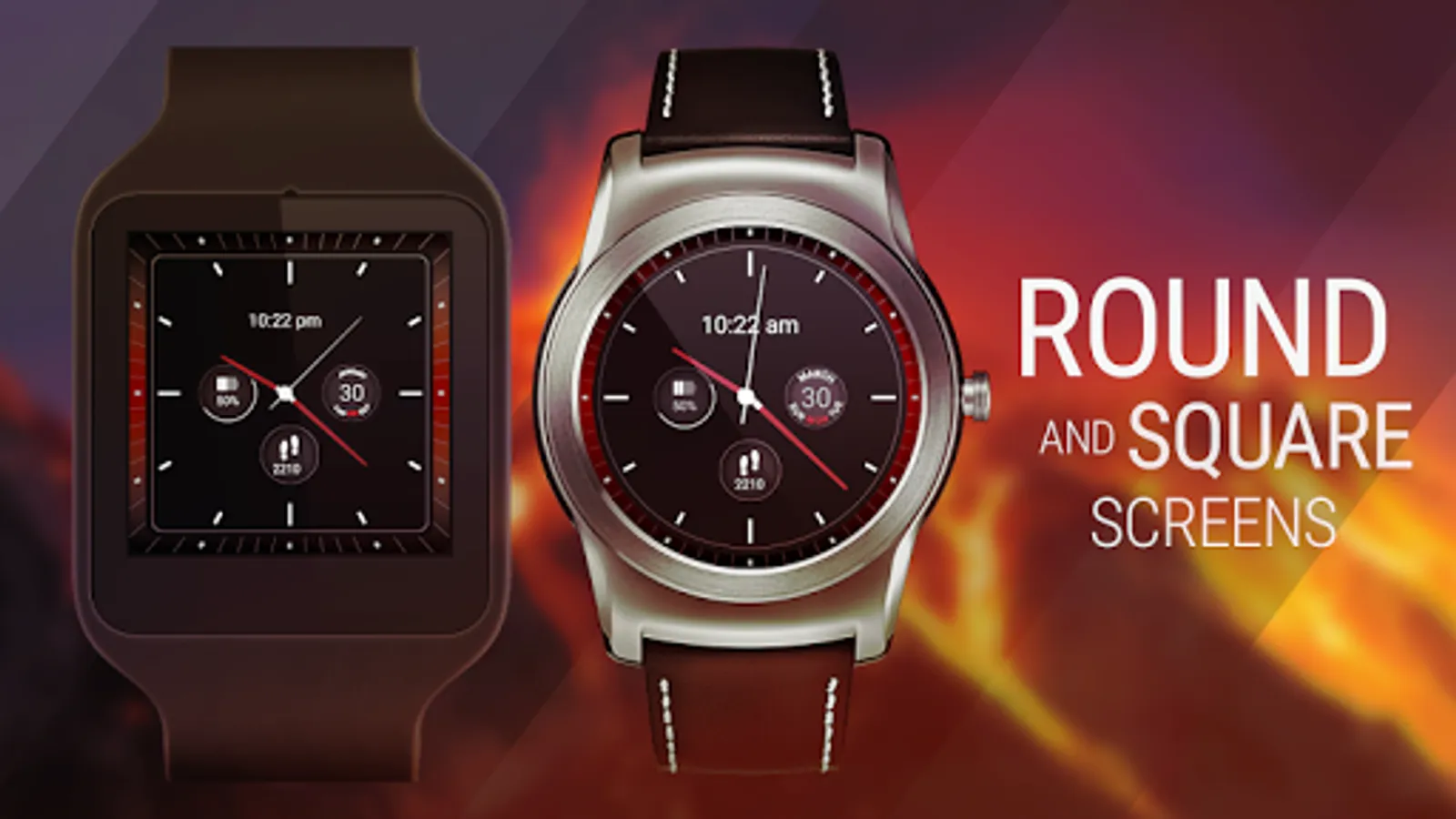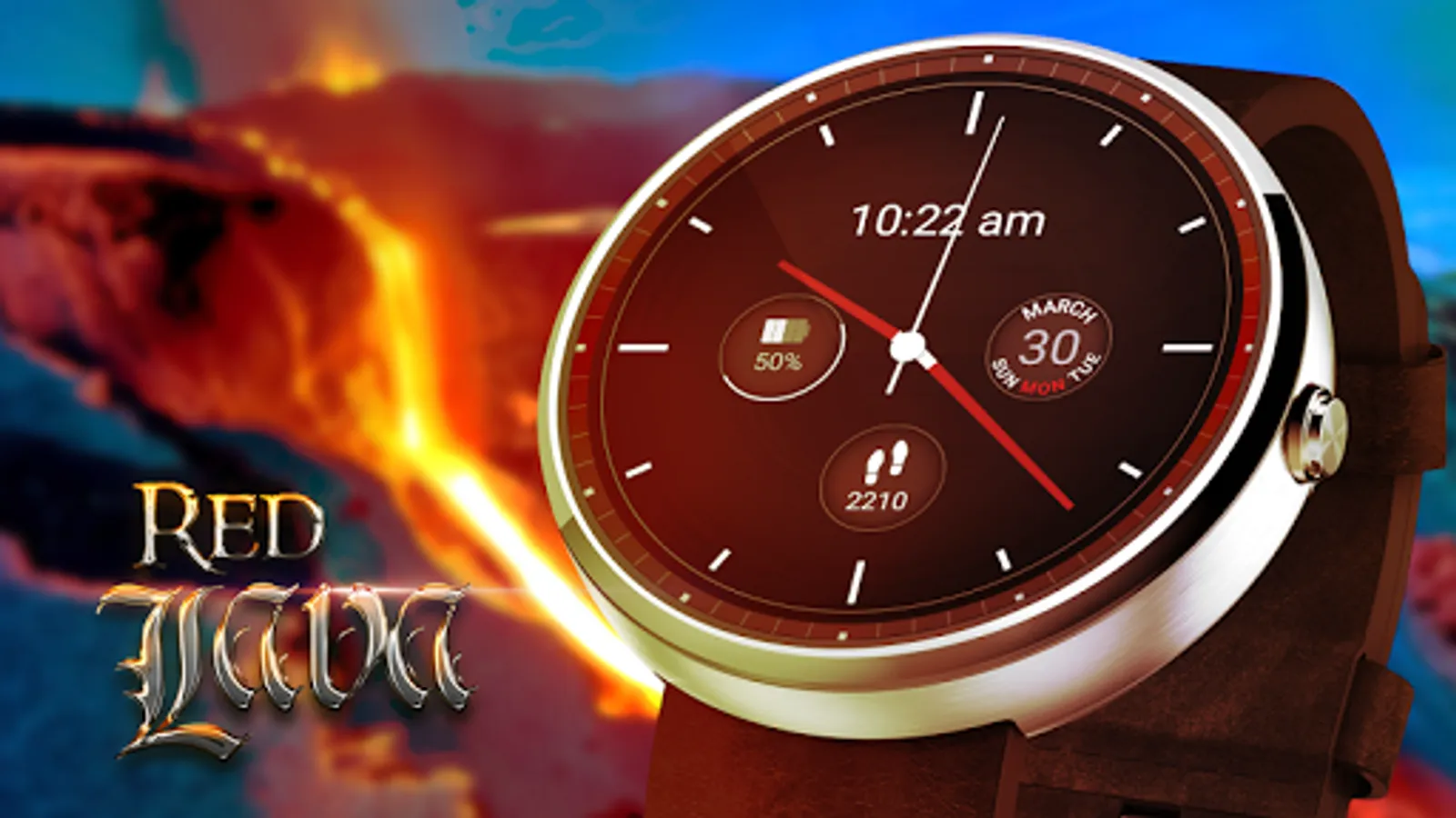 Download the amazing Red Lava Analog Watch Face on google play store at 0.99USD only. Once installed, check Android Wear app on your phone to find the Analog Stylish Clock and choose "Red Lava". Or long click on your watch to choose it from there.