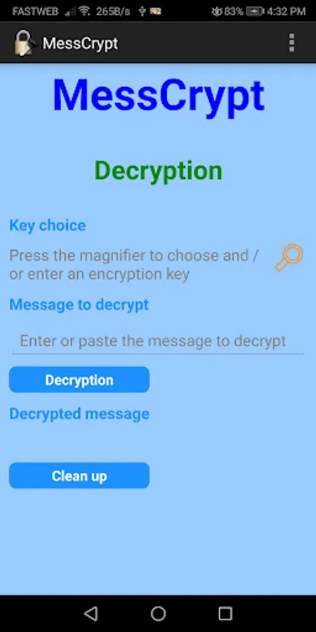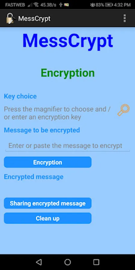 The MessCrypt application was designed to encrypt / decrypt text messages.