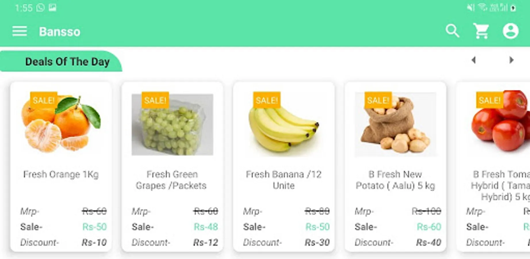 Shop online from a wide range of products including fresh fruits and vegetables, groceries, snacks, beverages, home & household essentials, beauty & hygiene and baby care. Order online on the Bansso Mart App for your favourite grocery brands – Aashirvaad, Amul, Bisleri, Bru, Cadbury, Complan, Good Life, Haldiram, Horlicks, Kellogg’s, Lays, Lizol, MTR, McCain, Nandini, Nescafe, Nivea, Nutella, Patanjali, Saffola, Snac Tac, Tropicana, Surf Excel, Vim, Yeah.