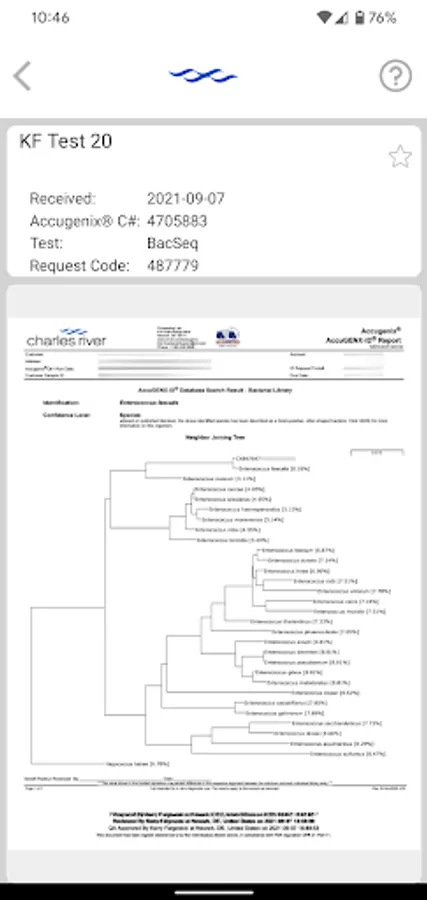 The Accugenix app provides easily accessible, real-time information about your microbial identifications without having to open a web browser. Get updates on your sample status, newly released identification reports, and notifications about recently identified Organisms of Interest. The Frequently Occurring Organism page lists the top 10 species identified over the past 90 days. The Help page gives you information about your account and an immediate way to contact Accugenix to answer any questions. Stay in control of your manufacturing by managing your environmental monitoring and microbial identification program!