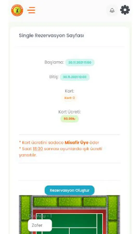 Members can check their reservations and make new reservations with the Altınkulaç Tennis Academy Member Application.