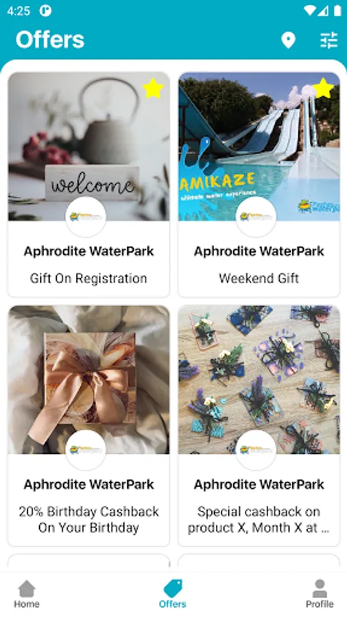 The Aphrodite Waterpark App offers you the possibility to enjoy all the benefits of our loyalty program in an easy way, through your smartphone. Use our Loyalty App to get cash back from promotions, claim rewards for Birthdays and get notifications for special events within the Waterpark.