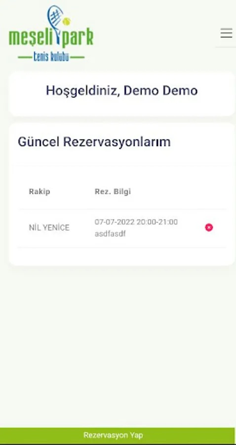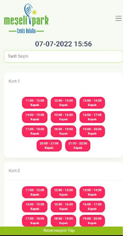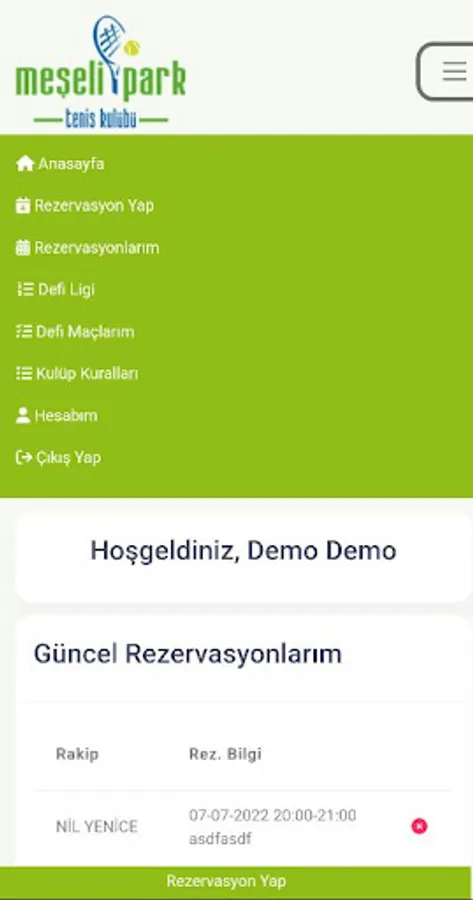 With the Meşelipark Tennis Club Member Application, Members can check their reservations and make new reservations.