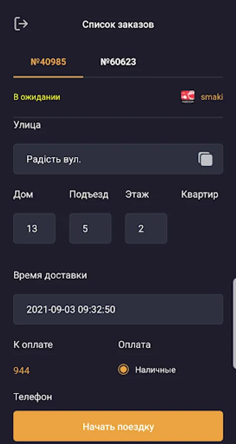 The application allows you to process orders for delivery to Smaki Maki couriers
