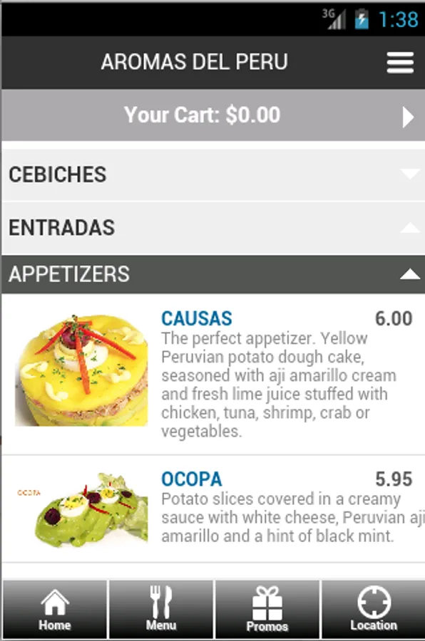 Download Aromas del Peru and order our delicious food from the comfort of your mobile device. Receive special promotion code only available through our mobile app.