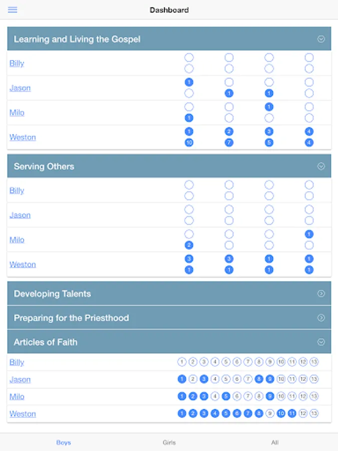 - Store your children's progress in the cloud and give ward members access to it. This also allows you to share any data across multiple devices.