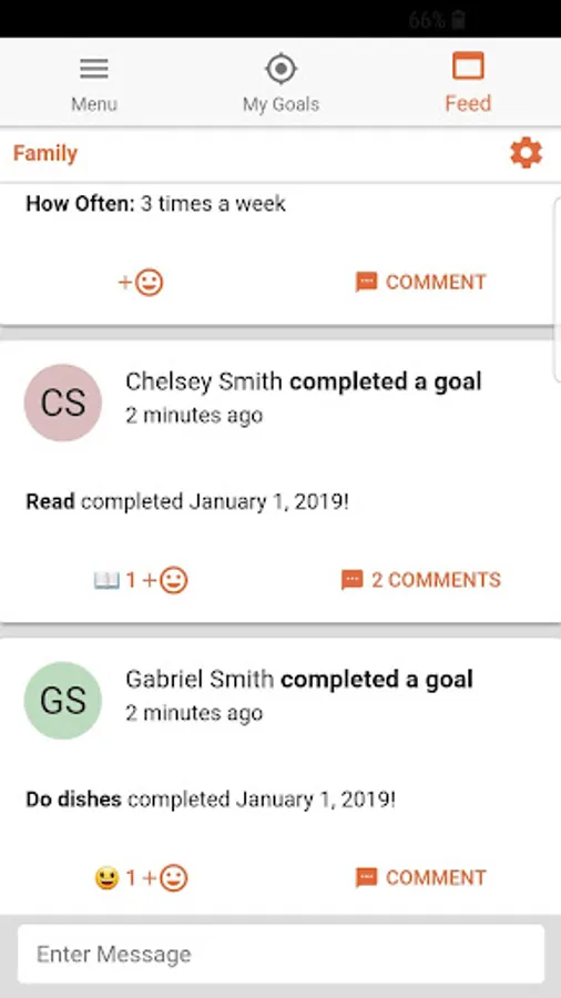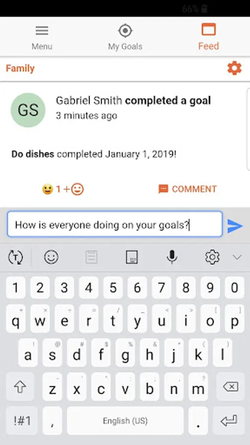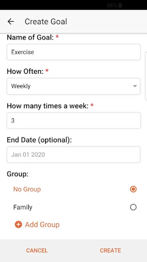 You can create daily, weekly, or monthly goals. Or goals that you only want to complete once. When you create your goal you can choose to add it to a group. By doing so, your friends will be able to view your progress as you accomplish your goals.