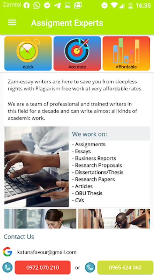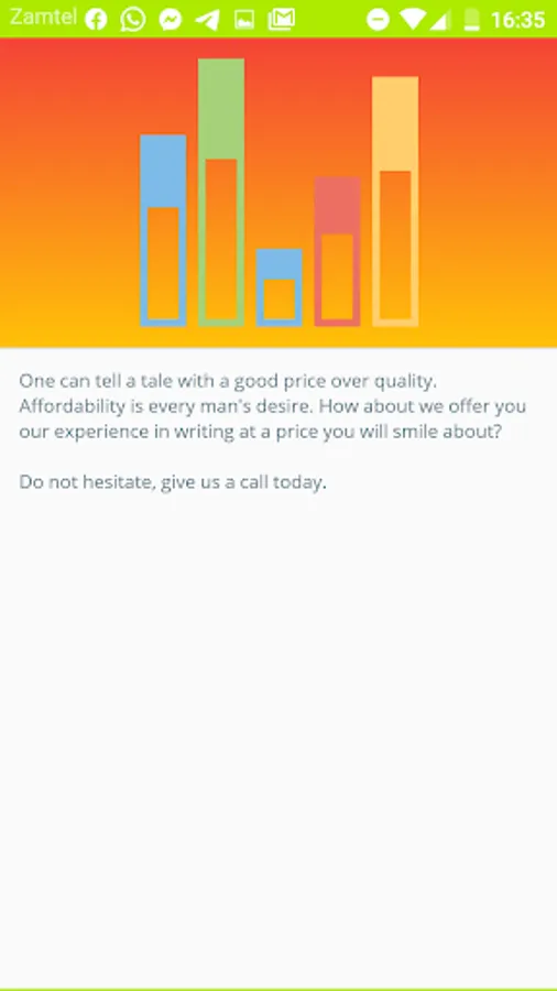 Download our app to get in touch with us whenever you feel like you need some assignments done for you. This means no more stressing about when and how your assignments will be written because Zam-essay writers are here for you. Our prices are unbeatable.