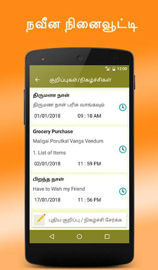 Notes, Events, Todo list Reminder( குறிப்புகள்,நினைவூட்டி )