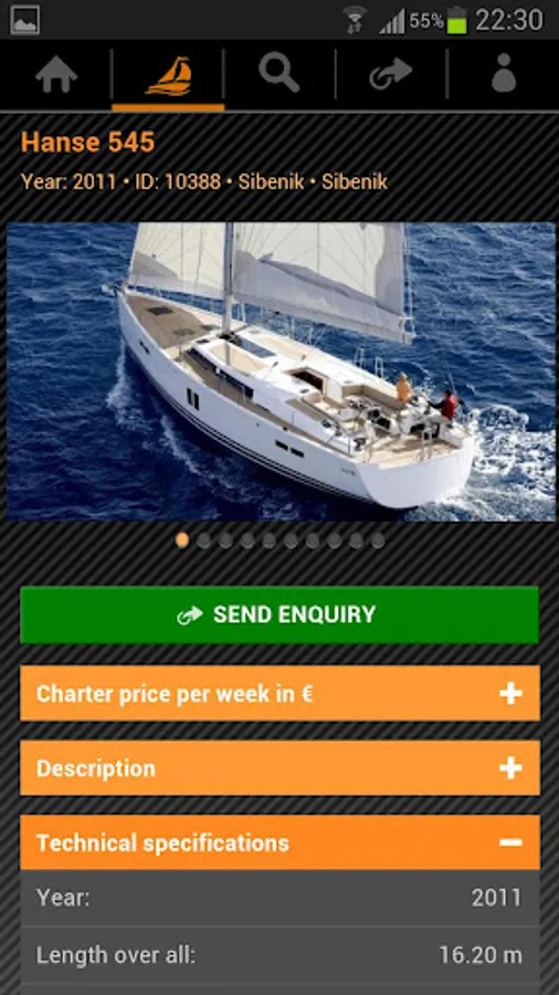 - Detailed yacht presentation (pictures, technical specifications, prices, description)