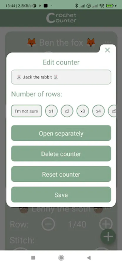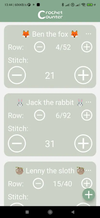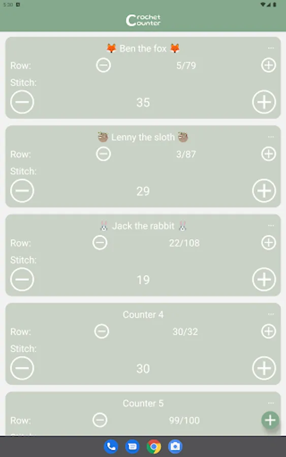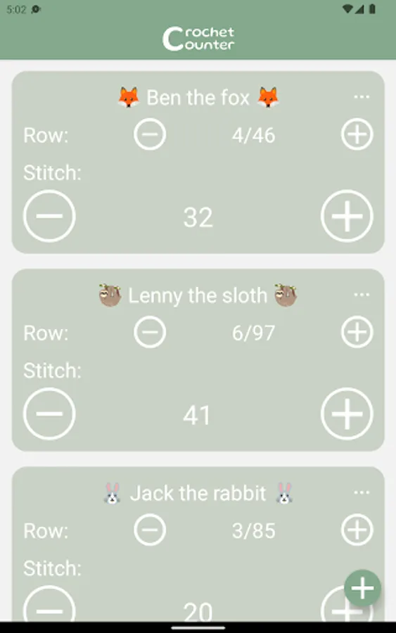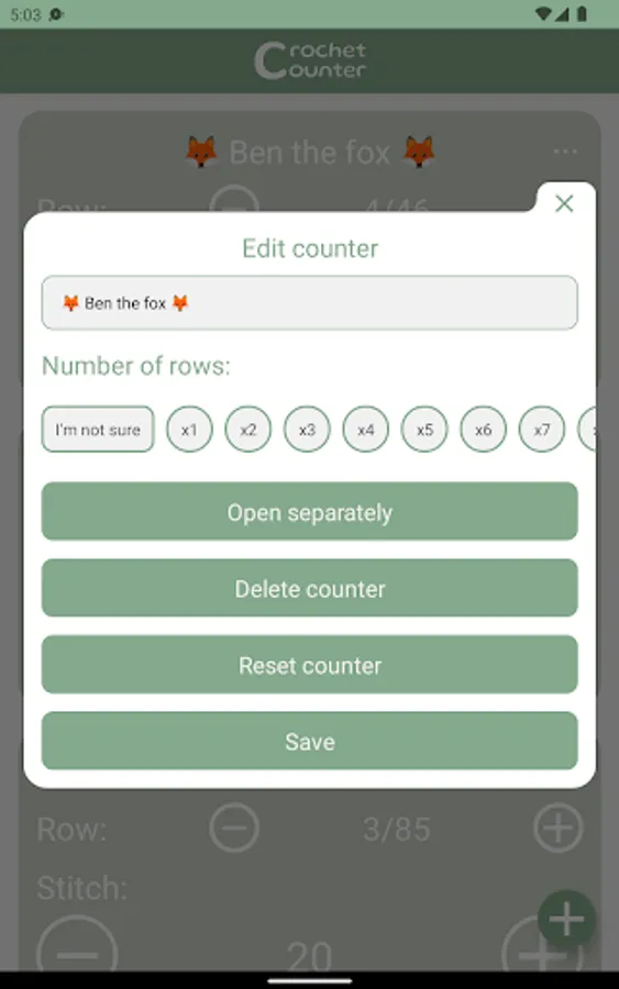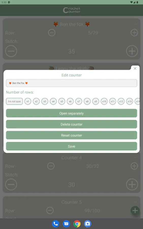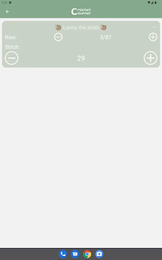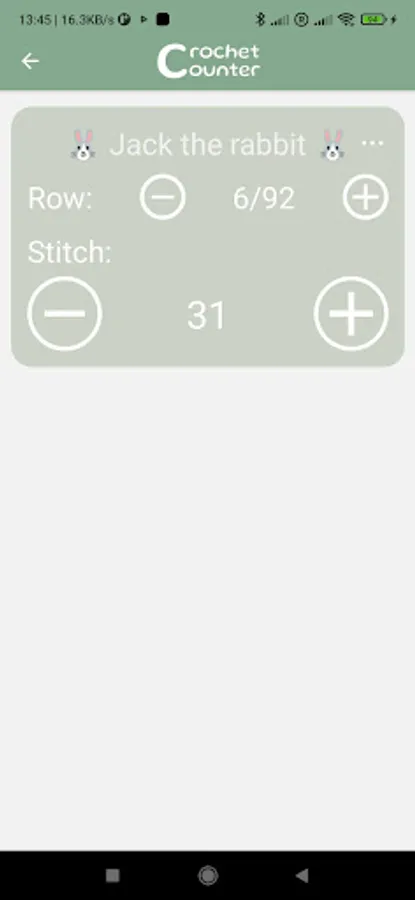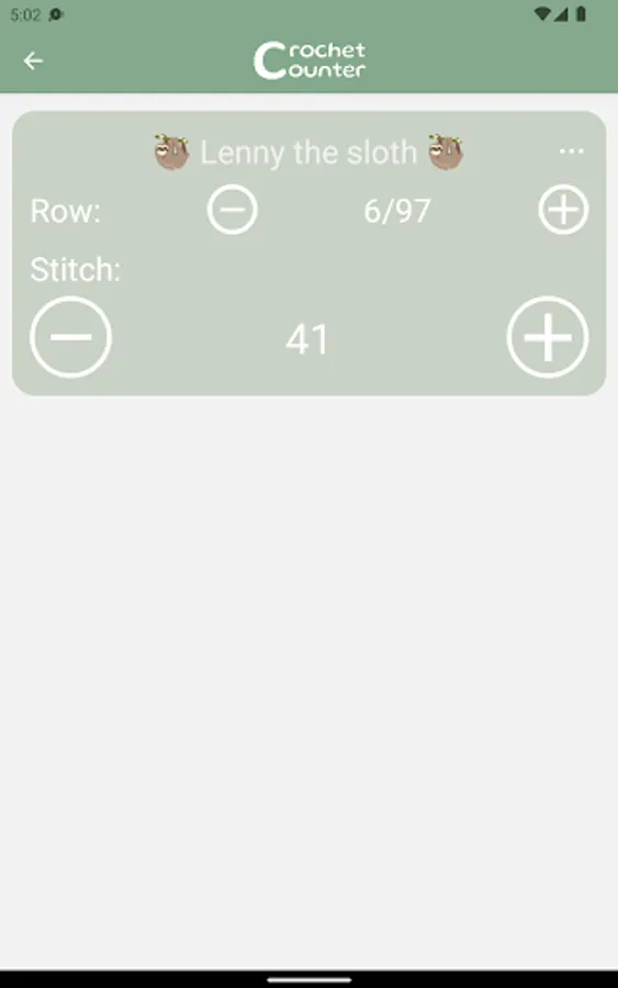 Each counter can be displayed separately on a new screen and it shows the project name and the number of stitches and rows completed.