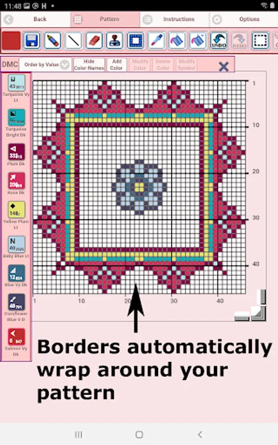 The Cross Stitch Pattern Editor will appear. Fill in the squares with DMS floss colors.