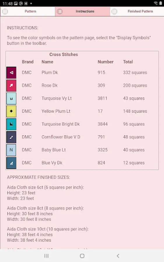 Highly recommended to use a tablet because of cross stitch pattern size.