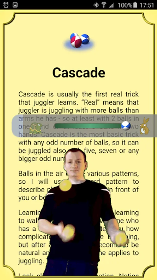 Would you like to become a juggler? Take this application with you to local park or use it at home. Read how to become a master quickly. Learn to juggle from 50 categorized juggling animations. Slow down animations for better understanding. Read guides to each of juggling trick and try it yourself.