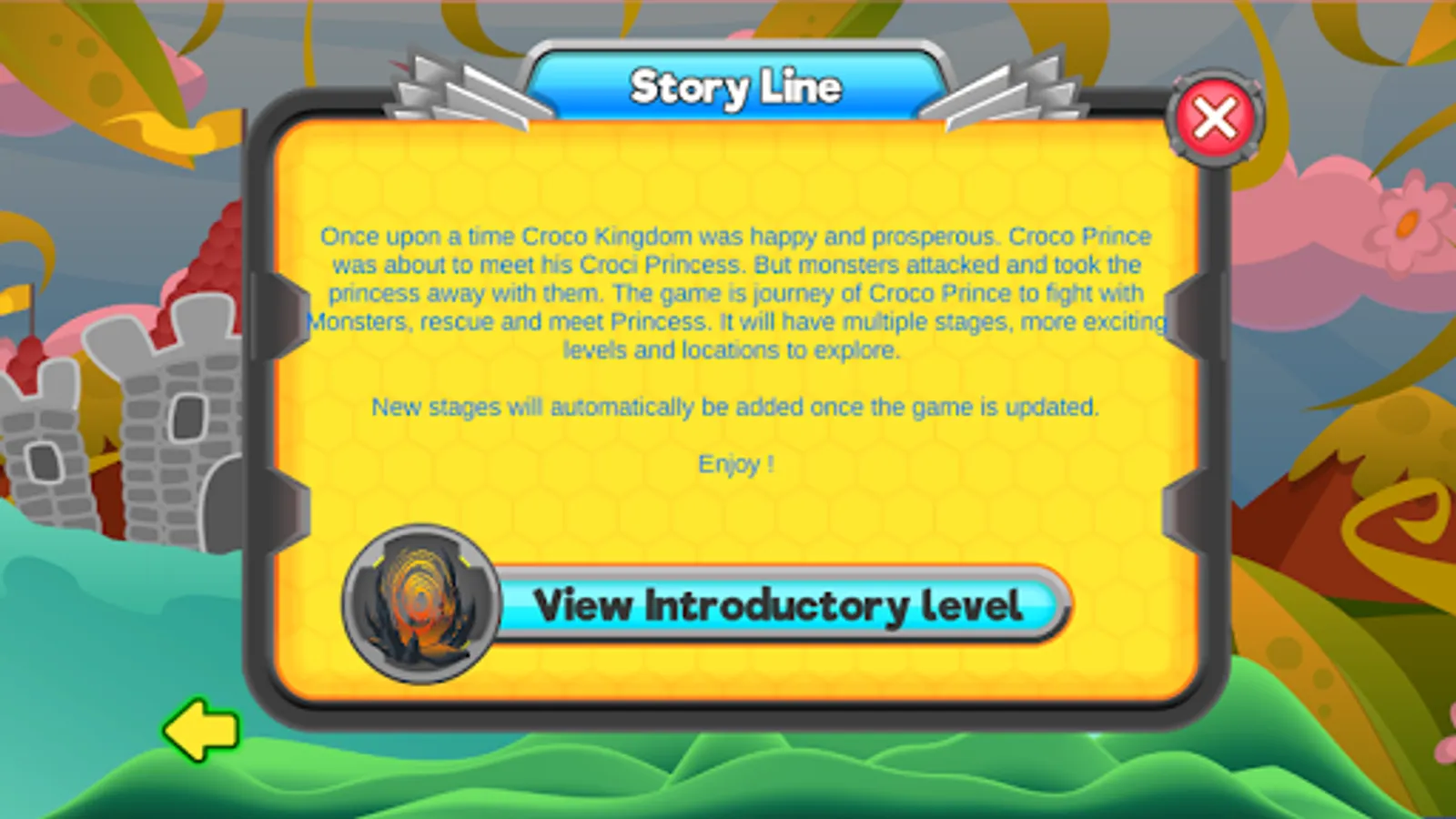 Once upon a time Croco Kingdom was happy and prosperous. Croco Prince was about to meet his Croci Princess. But monsters attacked and took the princess away with them. The game is journey of Croco Prince to fight with Monsters, rescue and meet Princess. It will have multiple stages, more exciting levels and locations to explore.
