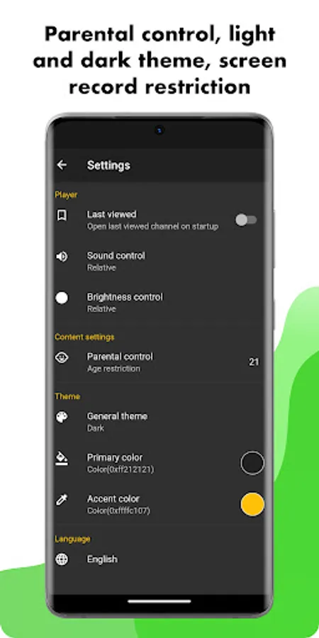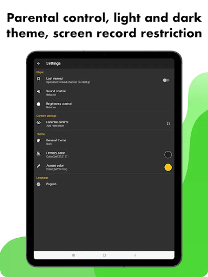 - Parental Control to lock channels and category