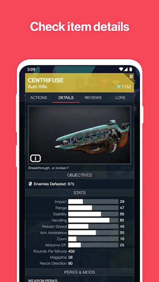 - Perk and Mod Customization: Take control of your items with the ability to change perks and mods directly from The Vault. Experiment with different combinations, optimize your gear for different activities and adapt to the ever-changing challenges of Destiny 2.