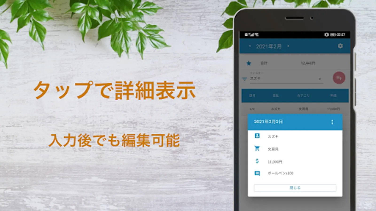 ・ Monthly household account book display