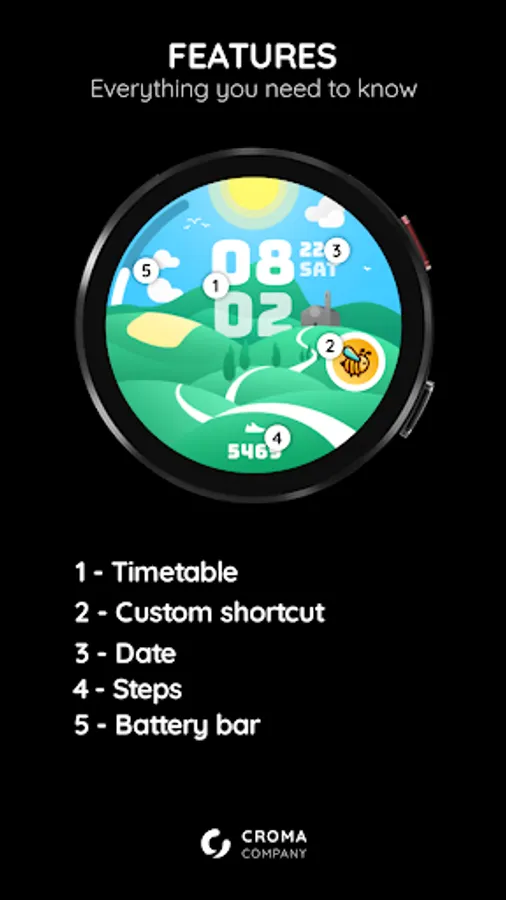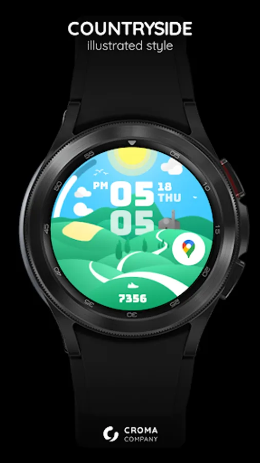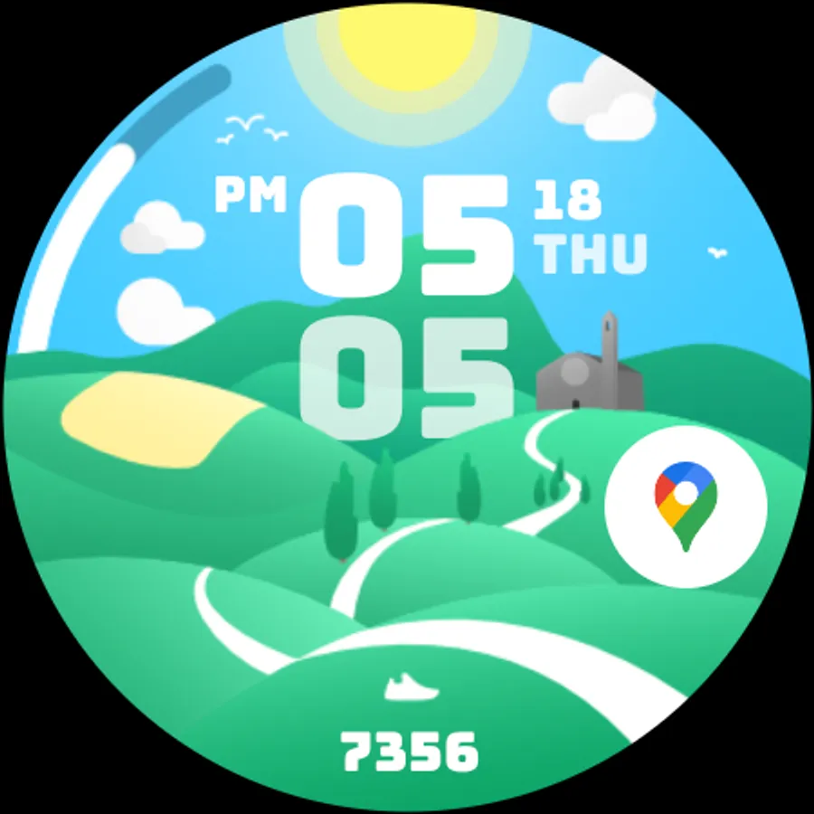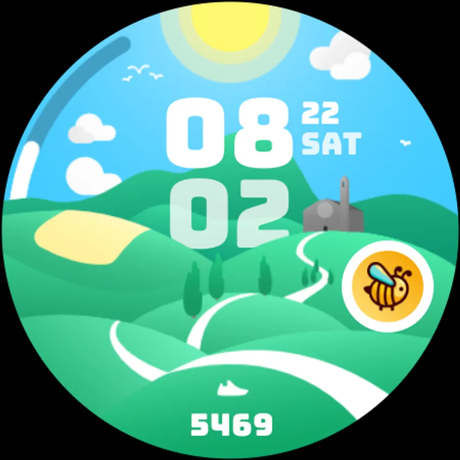Introducing Countryside, a charming and picturesque digital watch face designed for Wear OS smartwatches. Inspired by an illustrated style, Countryside brings a touch of whimsy and natural beauty to your wrist.