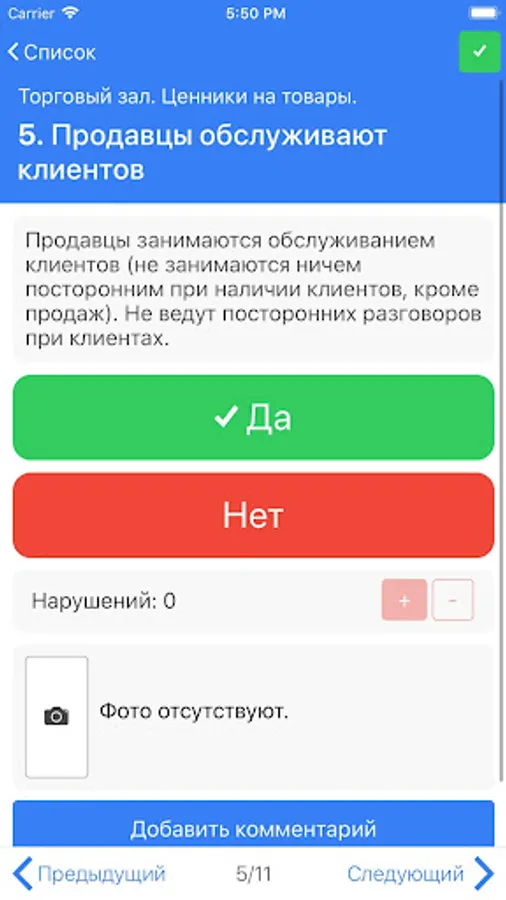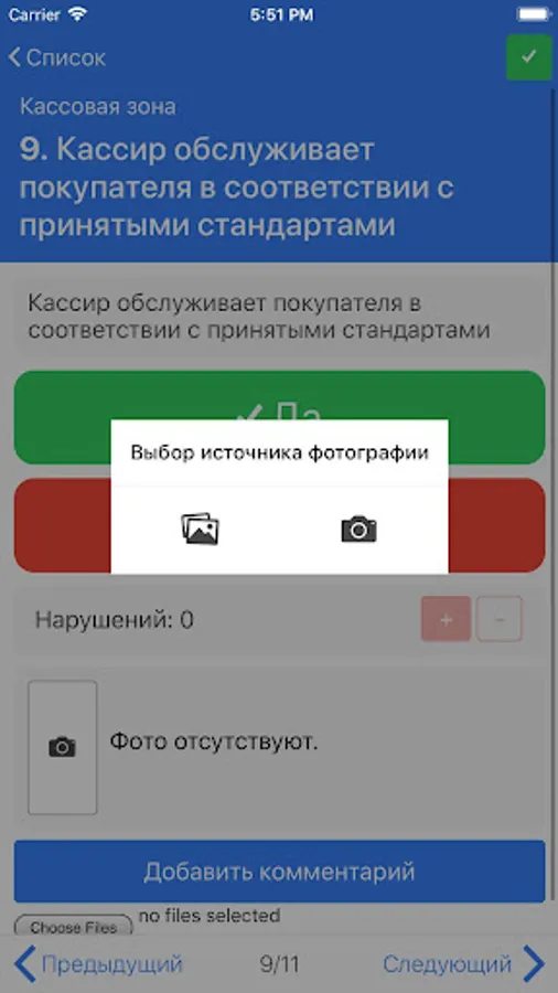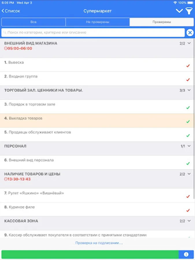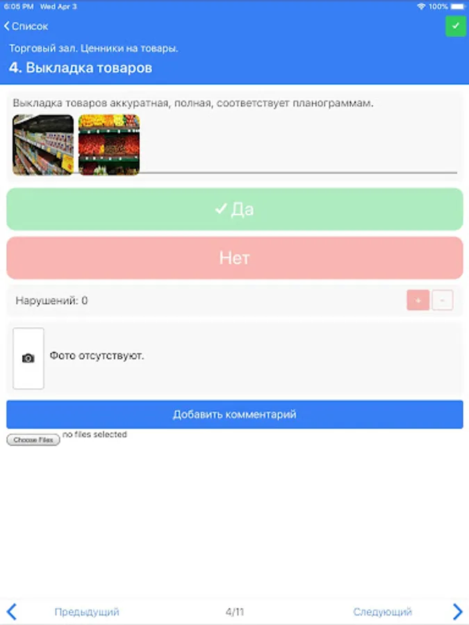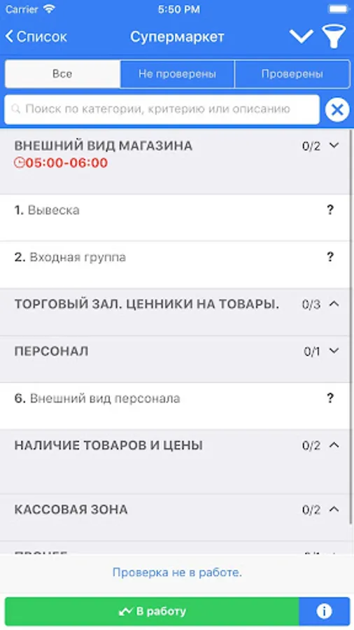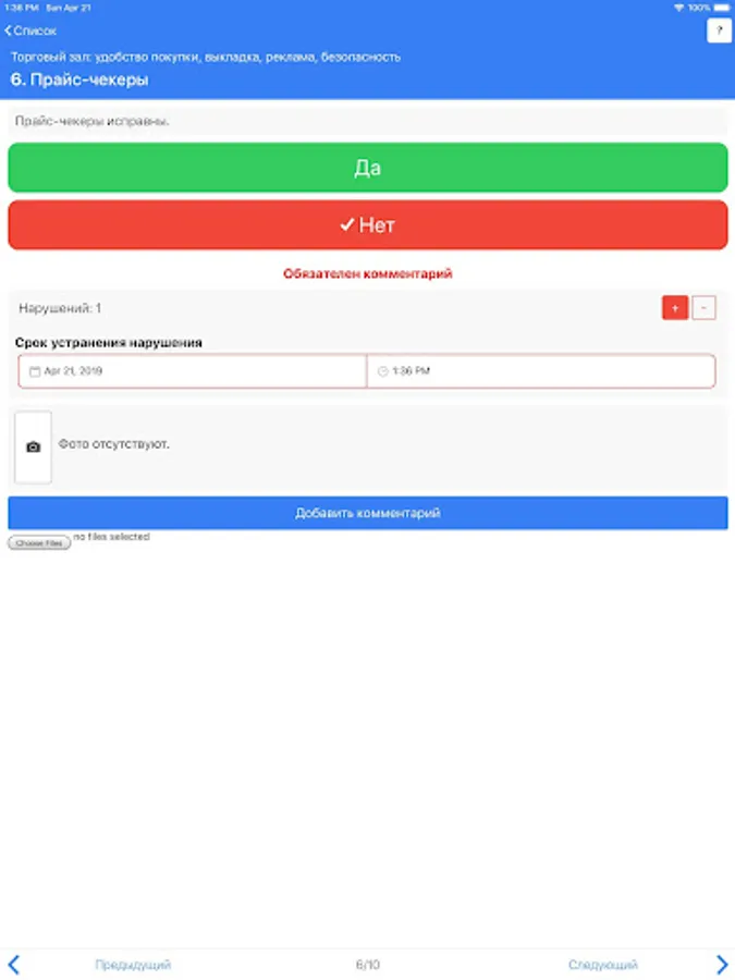 Mobile service application is ideal for use during on-site inspections, supports offline work in conditions of limited access to the Internet. Using the app, you can quickly and easily fill out a check list in the required categories and areas of inspection, indicating the assessments fixing violations and claims to create a photo-and to work on the bugs with a store manager or a branch for the elimination of violations.