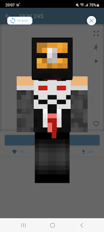 In 3D mode, you can see all the parts of skins to the smallest pixel. It is possible to send the skin to our skin editor and edit it by pressing just one button, but first remember to install 3D Skins Editor by Crone!